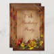 Womens' sophisticated elegant summer, fall custom 75th birthday party invitations with a chic autumn brown printed wood frame country collage with a cute beautiful butterfly, romantic, pretty yellow vintage roses and flowers and stylish burnt orange printed ribbons. These classy, glamourous floral girly invites - personalizable for any age - have an old fashioned elegance look. These lovely rustic country garden nature themed invites are beautifully decorated on both sides. All of the text can be easily customised to meet your needs and you can change the font style, colour and size of font if you desire. If you need any assistance customising your product please contact me through my store and I will be happy to help. PLEASE NOTE: All invites on Zazzle have flat printed images.
