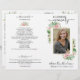This folded program features an elegant frame surrounded with roses floral bouquet. You can personalise with a photo of your loved one and program information regarding the funeral/memorial service. You can customise the program to any way you would like to remember and honour the memory of your loved one.