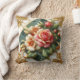 Elegant Roses With Green Background and Gold Trim Cushion