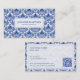 Elegant Royal Blue And White Damasks Pattern Business Card