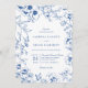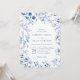 Elegant Royal Blue Floral Garden QR Code Wedding Invitation