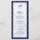 Frame your wedding menu with elegant metallic royal blue and gold jeweled filigree. White satin in the background adds to the luxury. Easily customize the coordinating blue text in classic fonts.