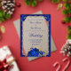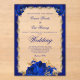 This elegant royal blue floral acrylic wedding invitation features a blue metallic background and a gold filigree jewelled frame combined with rich blue roses for the ultimate elegant wedding design. The blue text in classic formal fonts can be easily personalised for your own special day.
