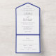 Elegant Royal Blue Monogram Modern Wedding All In One Invitation