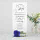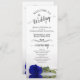 This beautiful wedding program features an elegant design with a single long stemmed vivid royal blue or cobalt coloured rose lying on its side reflecting in water. The titles are written in fancy script calligraphy, and there is space for your ceremony and wedding party details, as well as a short thank you for your guests. Wonderful way to welcome your friends and family to your wedding celebration.
