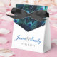 Beautiful royal blue peacock wedding favour boxes. You can personalise this elegant royal and teal blue peacock wedding favour box with your text in the font style you like, add a background colour and change the ribbon colour.