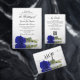 These wedding programs are elegant and tasteful, while still being budget friendly. The design features a single long-stemmed royal blue or cobalt coloured rose lying on its side, reflecting in a pool of water with waves and ripples. The typography features lacy black script calligraphy, and there is room for details on the ceremony, the bridal party, and a short thank you.