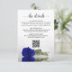 Elegant Royal Blue Rose Wedding Details QR Code Enclosure Card