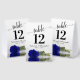These tent signs will not only help your guests find their tables, they'll also make your wedding reception more beautiful. The design is both elegant and romantic featuring a single royal blue or cobalt coloured rose lying on its side reflecting in water with waves and ripples. The title is in lacy script calligraphy with bold numbers so your guests can easily find the right table. There is room for the names of the couple and the wedding date.