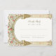 This elegant RSVP card features a luxurious baroque gold frame adorned with pink flowers, evoking timeless European glamour. Delicately designed, it offers a refined layout for your guests to respond to your special day. Perfect for classic, formal, or royal-inspired weddings, this RSVP card is fully customisable with your date and preferences.