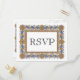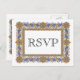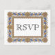 A custom RSVP postcard with baroque floral art from an antique manuscript. It features floral elements in the corners and centres surrounded by geometric patterns and a floral border with blue leaves. Customise It to change fonts, sizing and more, even save your design for later.