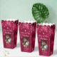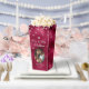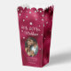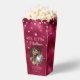 Make your ruby 40th wedding anniversary celebration extra special with these custom popcorn favour boxes. Featuring a stunning ruby red foil background adorned with faux glittering diamonds, these favour boxes add a touch of elegance and sparkle to any event. Personalise with the couple's last name, special date, and a cherished photo on the front. On the back, guests can easily find a QR code and text template directing them to upload their pictures and videos to a dedicated website. These boxes are perfect for event snacks, treats, and any occasion that deserves a little extra glam.