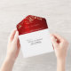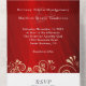 Your guests will love this all in one wedding invitation. An elegant ruby red with gold swirls. This includes your RSVP, that the guest can remove and mail back to you. Simply add your names and wedding details. Further customise, with the menu options on the RSVP portion. On the reverse you will add your name and address twice. One will go on the outside flap, and the other on the RSVP card.
