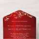 Elegant Ruby Red Gold Swirl Wedding All In One Invitation