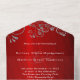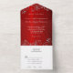 Elegant Ruby Red Grey Swirl Wedding All In One Invitation