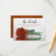 This beautiful wedding details/website card is designed to let your guests know where to go online to get more information on your wedding website. It features an elegant design with lacy script calligraphy and a single rust orange coloured rose reflecting in water with waves and ripples.