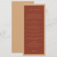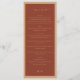 This elegant wedding menu features a vertical layout with a warm, earthy colour palette dominated by deep rust and cream tones. The design showcases a classic and sophisticated aesthetic through its use of traditional serif fonts and clean typography, creating a balanced and symmetrical composition. Each section is clearly defined with bold headers, while the ample spacing between items enhances readability and adds to the refined atmosphere. Perfect for a formal dining experience, this menu exudes an inviting mood suitable for celebrating special occasions.