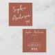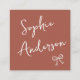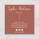 Make a memorable impression with this elegant square business card featuring a rich rust-terracotta background, modern handwritten script, and a delicate bow illustration. This stylish and feminine design is perfect for creatives, beauty professionals, boutique owners, planners, and anyone seeking a warm, contemporary branding aesthetic.