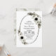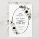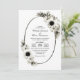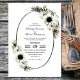 An elegant rustic black and white floral wedding invitation featuring sunflowers and daisies arranged on an oval frame.