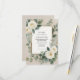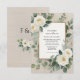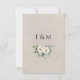 Complement your rustic boho wedding invitation with this elegant RSVP card. Featuring white watercolor roses, eucalyptus greenery, and a soft linen texture background. Easily personalise with guest response details.