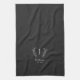 Custom family monogrammed laurels elegant chic black and white template kitchen towel. +++++++ A modern keepsake kitchen decoration or gift for weddings, newlyweds, anniversaries, housewarmings, new home, Thanksgiving, Christmas, or any other occasion.