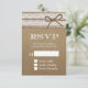 Elegant Rustic Burlap String Bow Wedding RSVP Card.