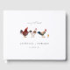 Elegant and rustic farm theme wedding guestbook featuring watercolor illustration of chickens and a chick.