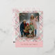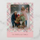 This holiday card stands out with its elegant and unique design. It features a timeless "Happy Holidays" greeting printed in real rose gold foil, customisable to your preference, on a light green, pink, and dark red plaid pattern design. The front offers space for your family name, photo, and a custom seasonal greeting, while the back is ideal for adding a personalised seasonal message or poem. It's a stylish way to send your holiday wishes.