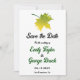 This elegant fall wedding save the date invitation is perfect for a modern autumn wedding. The simple design features green fall leaves with elegant black and green typography on a white background.