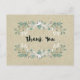 Say thank you with this simple rustic cardboard style background thank you postcard framed in elegant green and white earthy coloured country style flowers. Flat printed image, not textured.