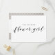 Ask the littlest member of your bridal party to join you on your big day with this Elegant Rustic Lace Will You Be My Flower Girl Postcard. This design features a delicate white floral lace pattern on soft grey colour background. Perfect for rustic barn weddings, boho chic themes, and vintage-inspired bridal parties.