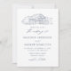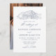 Rustic wedding invitations with a navy sketched illustration of a barn displayed at the top of the invite on a white background. The photo barn wedding invitations feature elegant navy calligraphy elements throughout the design. Personalise the navy wedding invites with your names and wedding details. The invitation reverses to display your full-bleed vertical engagement photo.