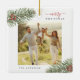 Our simple and elegant ceramic ornament features a beautiful watercolor illustration of a pine branch and modern lettering with your customisable photo and name.