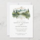 Elegant Rustic Pine Mountain QR Code Photo Wedding Invitation features unique calligraphy script paired with stylish type, along with an elegant mountain landscape watercolor.