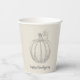 Elegant rustic pumpkin Thanksgiving paper cup. For a sophisticated minded host, these paper cups are the perfect addition to your Thanksgiving or friendsgiving feast in Autumn. Pencil sketch pumpkin i and a clean neutral colour palette. For the party host who loves to celebrate in the fall but wants something more elevated than the typical fall leaf or Thanksgiving designs. You can find more products to help curate a lovely Thanksgiving party with these designs in the Let’s Gather Elegant Pumpkin Thanksgiving Collection in The Gathering Designs store.