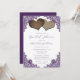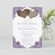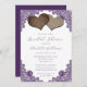 Complement your rustic purple wedding party with this elegant bridal shower invitation featuring two burlap hearts and delicate floral lace. Matching items available.