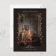 This gorgeously elegant and rustic holiday card is a perfect choice for anyone looking for a Christmas photo to send to friends and family. The design features one central image on a dark background with a string of lights on both sides and a delicate gold glitter effect at the top corners.