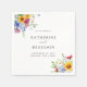 Easily personalise your wedding napkins with this editable template. Features minimalist elegant typography design with colourful rustic summer floral.