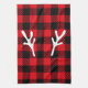 Elegant rustic trendy buffalo plaid red with deer tea towel