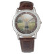 Perfect keepsake gift for the best dad ever! This rustic modern watch features a favourite photo along with your personalised name on a dark brown wood panel backdrop.
