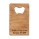 Add a personal touch to your wedding with personalised father of the bride credit card bottle opener. This bottle opener features personalised title and wedding date in black on a rustic wood grain imitation background, in classic serif font style. Also perfect for best man, father of the bride, ring bearer and more.