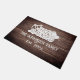 Make a grand entrance to your love nest with our Elegant Rustic Wood Just Married White Typography Doormat! The front design features a rustic wood texture background adorned with a white 'Just Married' logo, hearts, and wedding rings. Personalise it with the names of the bride and groom, along with the established wedding year in elegant chic white. This doormat is not just a welcome; it's a stylish declaration of your love story. Elevate your doorstep with a touch of romance and personalisation. Because every step into your home should feel like a celebration.