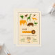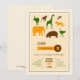 Elegant and classy invitation with a safari theme. This unisex design features the silhouette of different animals in bold colours on a neutral background. A solid colour border and stripes frame completes the modern look of this card. The back of the card has a stripes pattern. This invitation is easy to coordinate with mainstream solid colours party supplies.