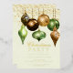 This elegant holiday party invitation features beautiful Christmas ornaments in jungle safari styles with gold string lights on a soft green background. Gold foil text can be easily changed by clicking "Personalise". Perfect for those family or business holiday parties.