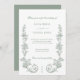 Elevate your special day with this elegant, sage green classic floral design featuring baroque-style scrolls with columns of toile roses and foliage. Includes text fields for your initials.