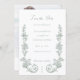 Elevate your special day with this elegant, sage green classic floral design featuring baroque-style scrolls with columns of toile roses and foliage. Includes text fields for your initials.
