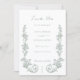 Elevate your special day with this elegant, sage green classic floral design featuring baroque-style scrolls with columns of toile roses and foliage. Includes text fields, QR code and photo template.