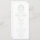 This elegant wedding program combines Victorian and Chinoiserie-inspired style with a modern touch. The front features the couple's monogram initials surrounded by a delicate sage green baroque crest, with their names, wedding date, and ceremony details below in soft sage green text. On the back, a list of the bridal party and a personal thank-you message to guests add a heartfelt touch. The design is enhanced with graceful sage green calligraphy, making it perfect for couples seeking a romantic, nature-inspired wedding theme with timeless elegance.
