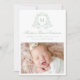 Elegant Sage Floral Crest Monogram 4 Photo Birth Announcement