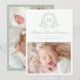 Announce your baby’s arrival with this elegant sage green photo birth announcement card. Featuring your baby’s monogram initial framed by a delicate floral crest in soft sage green on a white background, this design blends timeless elegance with modern botanical charm. Your little one’s full name appears in graceful matching calligraphy, with space for birth stats, family name, and a horizontal newborn photo below. The back includes a coordinating three-photo collage, perfect for sharing even more sweet moments. Personalise with your baby’s details and photos to create a beautiful keepsake for family and friends.